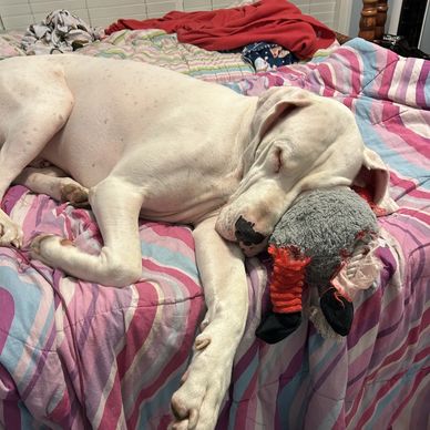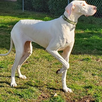 Vanna, an Albino Great Dane, joined us in 2016 from Waters Edge Rescue, and was born without eyes. She was in a neglect situation as a puppy and was removed from the situation. She found her way to Blissful Dreams as a 2-year-old.