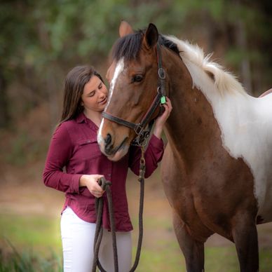Myrth is a 12-year-old Percheron cross mare that was rescued from Ron Danta and Danny Robertshaw (Ron and Danny were Jamie’s trainers and mentors growing up). She was severely underweight and covered in scrapes and cuts. Ron and Danny sent Myrth to Blissful Dreams, where Jamie and her daughter, Sam, began to work with her and found a job and a purpose for her. When Myrth arrived, she was very much to herself and very skittish. Little did we know that she would have the job of helping Sam through severe anxiety and stress in an extremely difficult and challenging time in her life. Sam helped Myrth find her personality, teaching her how to jump and how to smile. Myrth helped Sam overcome life struggles. The once beaten up and reserved painted horse now gives kisses and smiles bringing joy to those who visit.