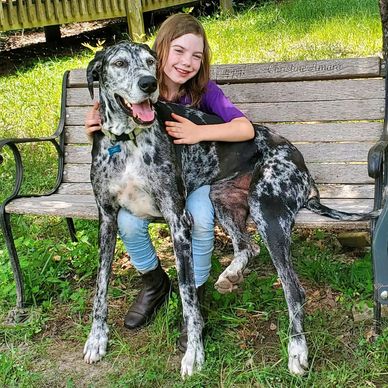 Keller is a blind and deaf Great Dane, adopted from Water’s Edge in late 2021 at the age of 7 months. He was in a hoarding situation in NC with his 5 brothers and sisters and was seized by animal control. He quickly became a foster fail at Blissful Dreams.