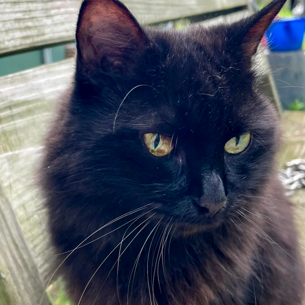 Hebe is our most recent feline addition in April 2025. She is approximately 8 years old. Hebe is a domestic long hair of sorts. She went through 3 homes before finding herself at Blissful Dreams. After about 3 months of transitioning, she is finally adjusting and making BDRR her permanent home.